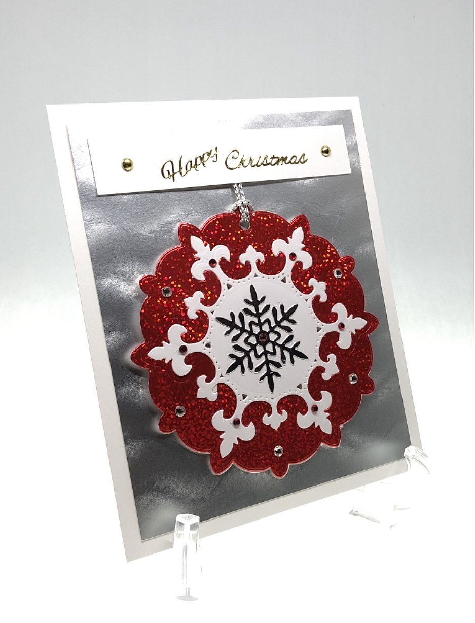 DG002H, J, L, M, N, P, Q, R - This snowflake is the centrepiece of the card but release the string at the back and can be used as a hanging ornament.